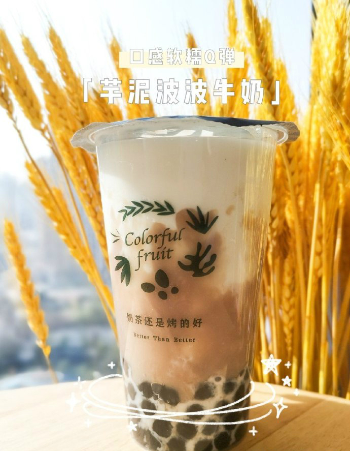 芋泥波波牛奶:芋泥+牛奶+波波,经典芋泥饮品,芋泥控的必选款。新鲜纯牛奶精心调制,拥有芋泥的细腻和波霸的Q弹,双重口感冲击,鲜味触手可及,适合下午茶补充能量!。
